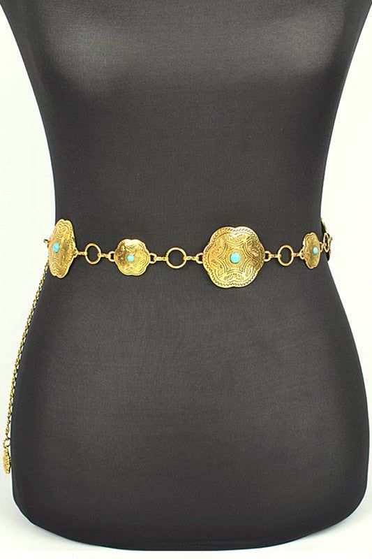 - Styling: Western engraved chain belt designed for everyday wear; width 1.75" and length 49", a neutral accessory that complements modern style.