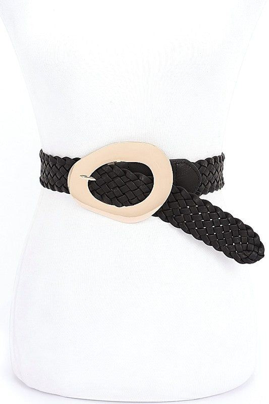 Braided Fashion Belt With Shiny Buckle Polyurethane